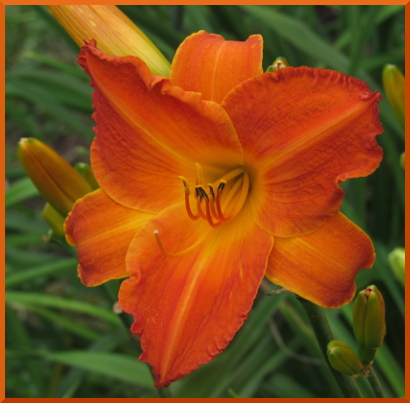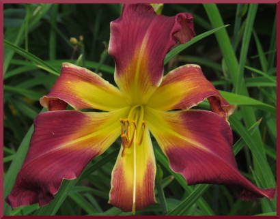 Last to Hit the Bricks starts to bloom the first week of August and is in bloom until late September. Good branching with high bud counts up to forty five. The color is a blend of red, gold and orange and fits into the fall landscape well. Very Pod and pollen fertile