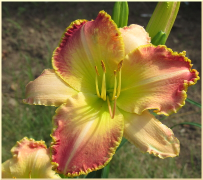 VOODOO MUSIC - 2010Church - 2010An unique lavender pink color with large unusual form 7.5 inch flowers held up where they can be seen on tall 41 inch high scapes with three way branching. Dormant, midseason to late diploid. It's a changeling. On cooler days the color is a steely lavender .Warm temperatures brings out warmer pink lavender color. | ![]() PINK LADY LOVEChurch - 2010Dormant, 30" tall, 6.5" flower. Nice clean color flower mixing Lachman with Stamile genetic lines.(Lady Tiger X Great White) four way branching with a bud count of 20. |