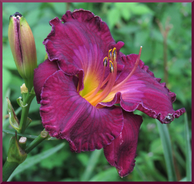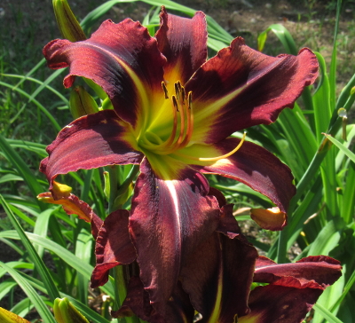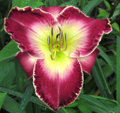 ![]() Purple Wave Runner - 2022Church - 2022 Saturated burgundy purple with ruffled, wavy edges, lavender purple eye, and green to apricot throat |