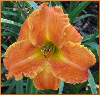 Grilled Cheese is large daylily that starts out at seven inch with washed orange gold color with red eye then settles down to six and half inches. Pod parent was Fooled Me with Ram pollen.